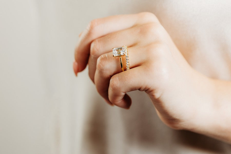 A modern, glamorous, and truly unique diamond band. The ""Margot"" gives a gorgeous presence to your hand, featuring a continuous row of brilliant diamonds, each held in a distinctive 3-claw setting. This minimalist approach allows more of each diamond to be seen, creating an exceptionally bright and captivating look. It’s designed to complement an engagement ring exquisitely, adding a statement layer of sparkle that feels both modern and timeless.