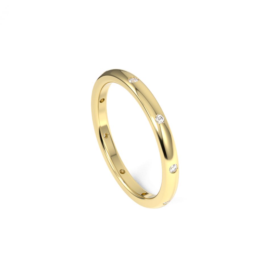 A stunning diamond ring with thoughtfully spread pressure set diamonds across the band for just a hint of sparkle.