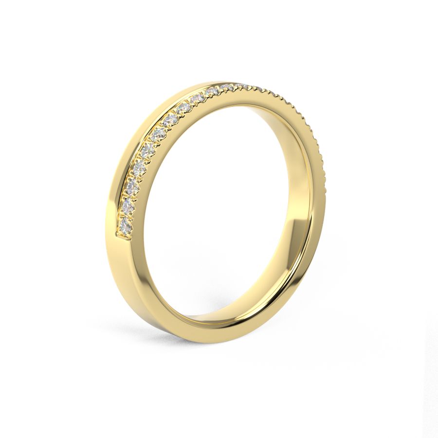 The perfect answer for when you can't decide between metal and sparkle. If you love the look of a diamond wedding ring but also the warm hue of solid gold, this is your ring! We took a modern, flat-profile band and gypsy-set it with brilliant diamonds. This secure setting places the stones flush with the metal, giving you a beautiful dash of sparkle that's smooth and perfect for everyday wear. It's the best of both worlds.
