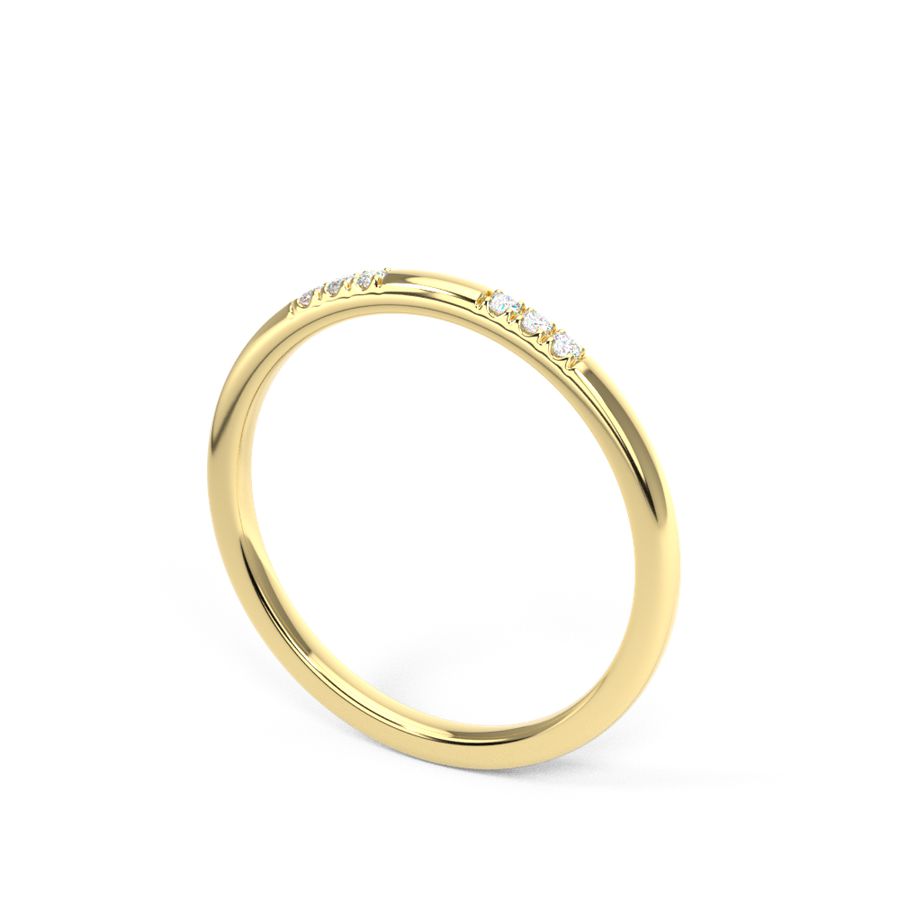 A stunning diamond ring with thoughtfully placed diamonds across the band for just a little bit of sparkle and a lot of luxe.