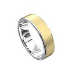 A timeless design with a sophisticated, contemporary feel. The ""Adam"" is a classic men's wedding band, elevated by fine details. It features a wide, modern brushed finish on the main band, which is beautifully framed by clean, brightly polished edges. This subtle contrast gives the ring a refined and elegant character. Pictured in a confident 7mm width, this is a substantial and incredibly comfortable ring designed for a lifetime of wear.