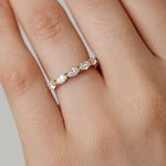 A bold and unforgettable statement. The ""Diana"" ring redefines the classic diamond band. We took the elegant marquise cut and turned it on its side, setting a continuous row of diamonds in a modern ""East-West"" direction. This creates a stunning, architectural look that is both incredibly chic and powerful. Each 5mm diamond is expertly set to create a seamless line of brilliance that wraps around the finger. This is more than a wedding ring; it’s a piece of wearable art.