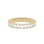 Designed to add depth, dimension, and timeless elegance to your hand. This stunning wedding ring features a continuous band of beautiful emerald-cut diamonds. Celebrated for their clean lines and sophisticated step-cut facets, they create an incredible ""hall of mirrors"" effect. It’s a captivating look that is both understated and luxurious. Stunning on its own, it also pairs beautifully with a wide range of engagement ring styles, adding a touch of architectural grace.