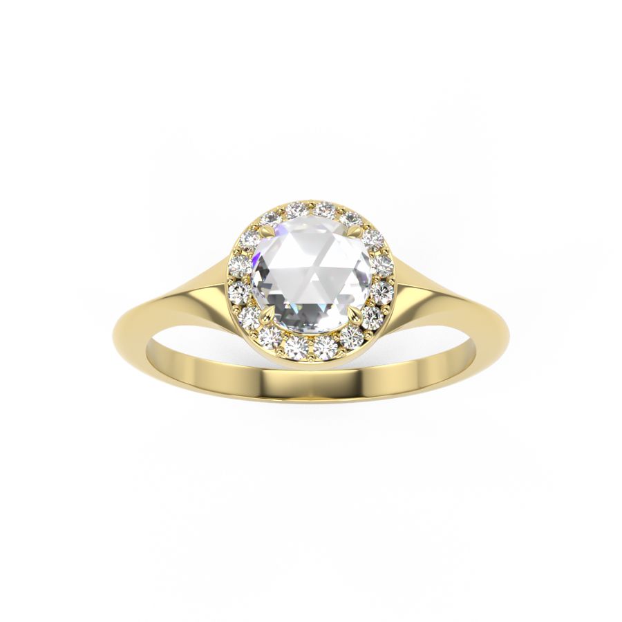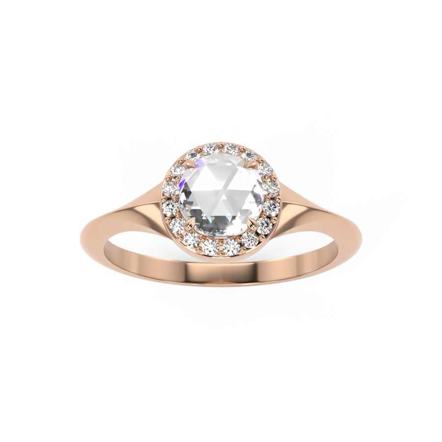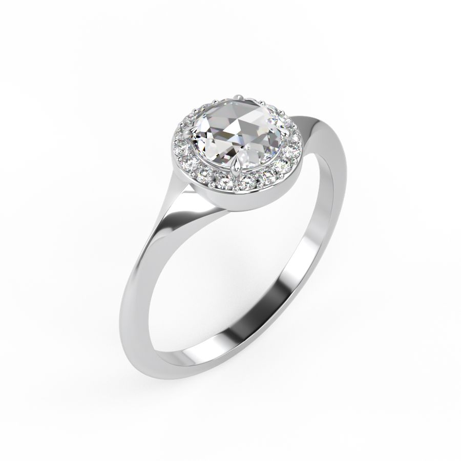 Rose Cut Diamond with Diamond Halo engagement ring