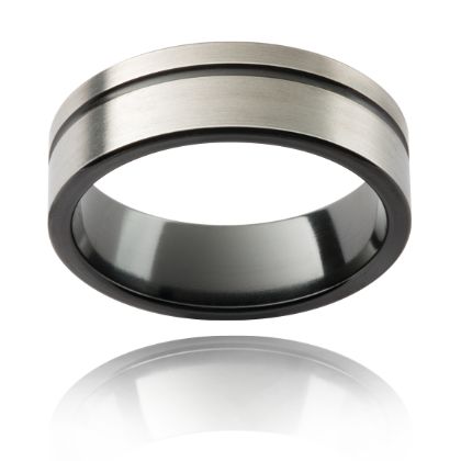 The most popular materials for a men's wedding ring are gold, platinum, and black zirconium.