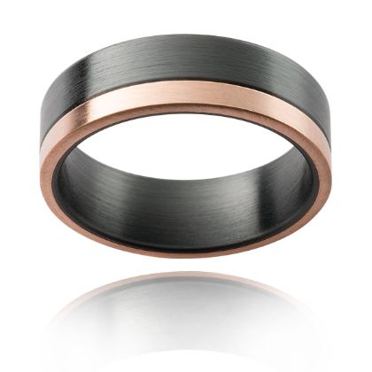 Xander | Black Zirconium and Rose Gold Mens Ring