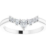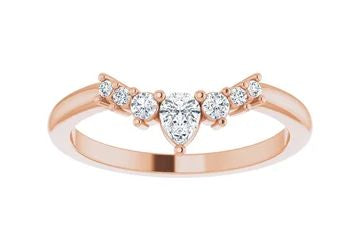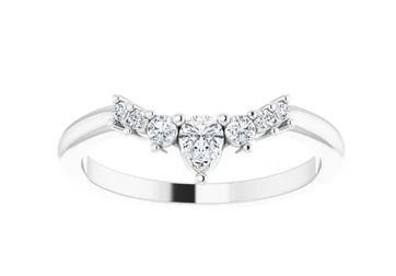 Moissanite Crown ring with Pear Accent - a curved shape moissanite ring with pear shape moissanite and round moissanite
