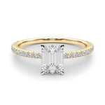 emerald cut diamond engagement ring with diamond band