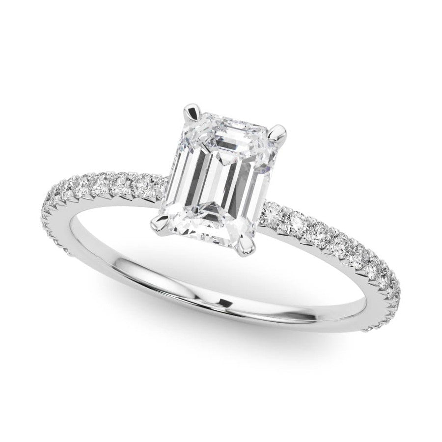 Emerald Cut Diamond engagement ring with diamonds band