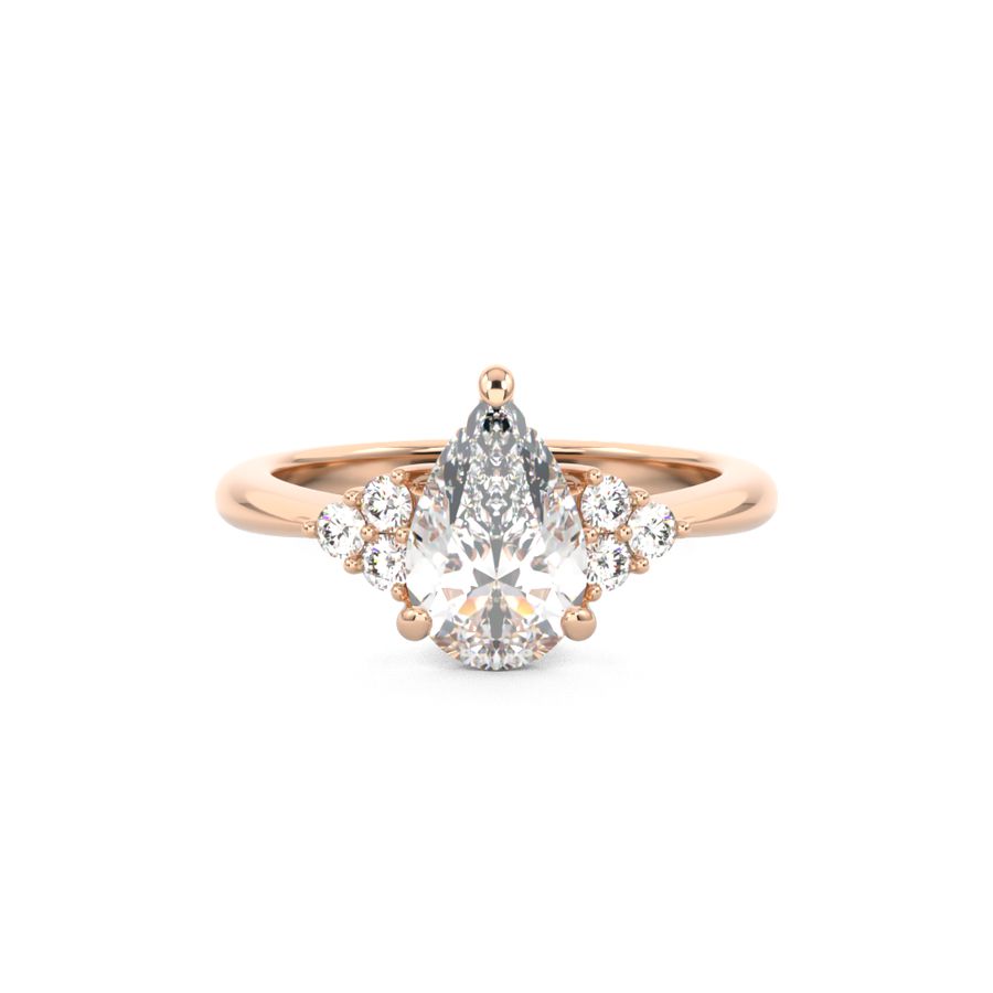 Alicia Pear Shape diamond engagement ring with round diamond clusters