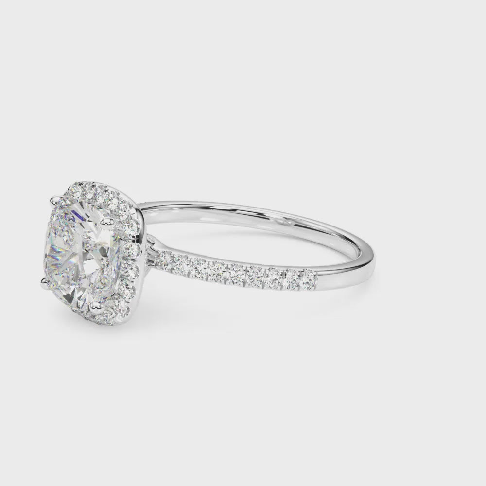 Cushion Cut Diamond with Diamond Halo engagement ring