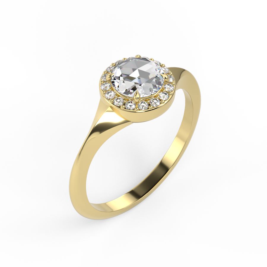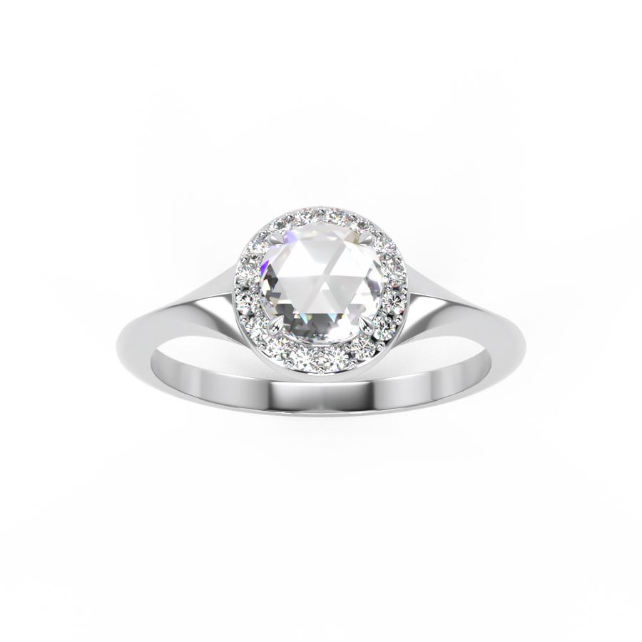 Rose Cut Diamond with Diamond Halo engagement ring